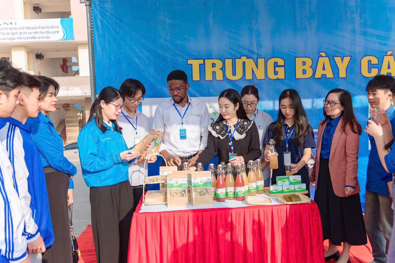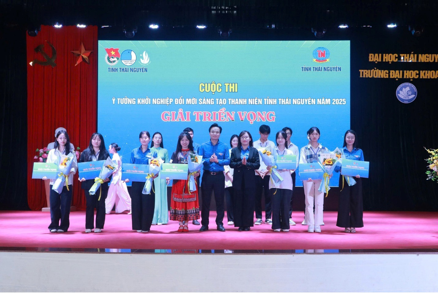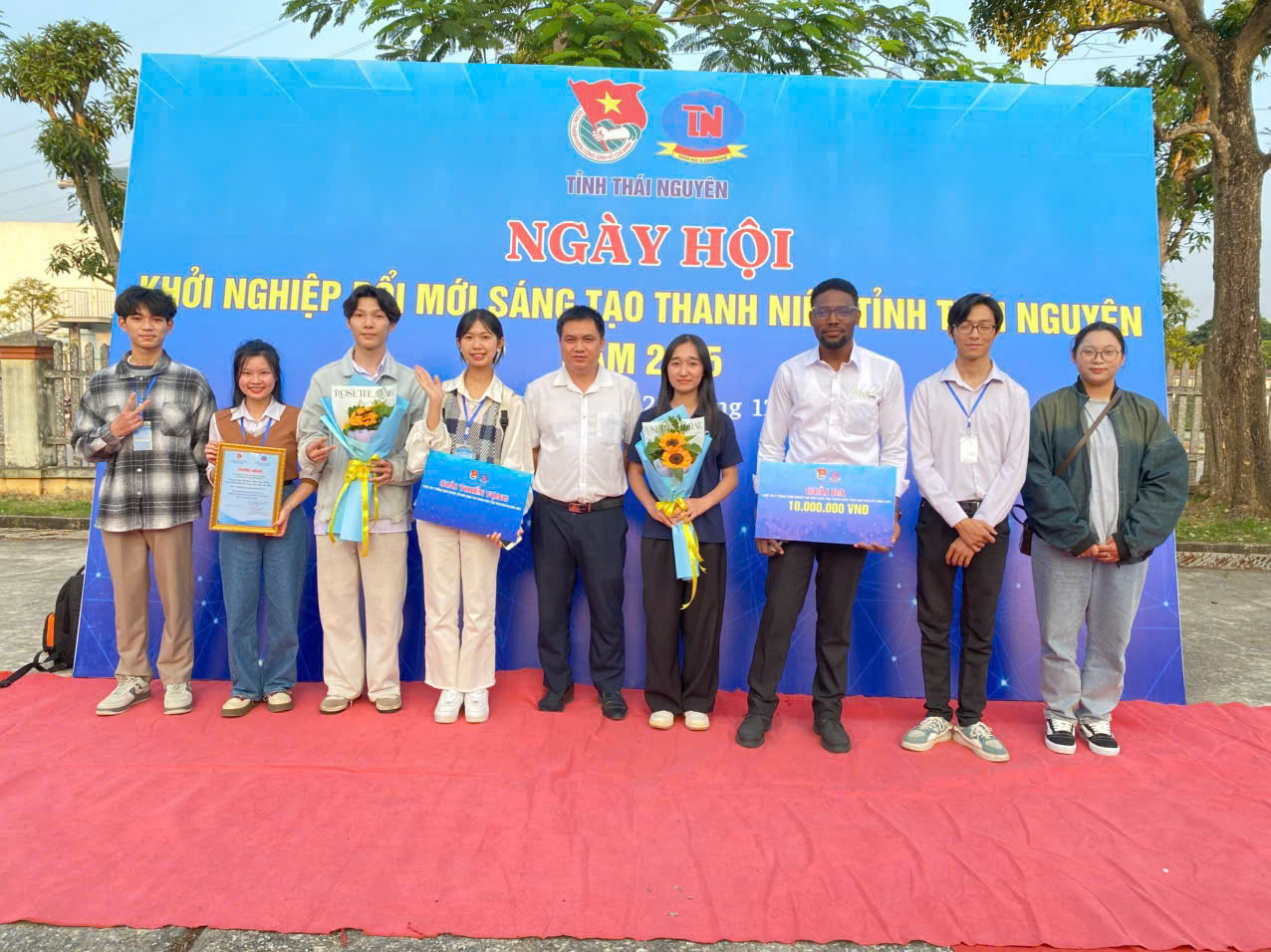 Buổi chiều cùng ngày, chương trình Tổng kết và Trao giải Cuộc thi “Ý tưởng khởi nghiệp đổi mới sáng tạo thanh niên tỉnh Thái Nguyên năm 2025” đã được tổ chức. Vượt qua nhiều dự án tiềm năng, nhóm sinh viên Viện CNSH - CNTP học gồm: Nguyễn Công Dương; Cao Thị Thùy Chi; Ngô Đào Hiền Anh; Nguyễn Thị Kim Thanh; IKECHUKWU FRANKLIN EKEH với dự án: Phát triển chuỗi sản phẩm lên men từ cây mướp đắng rừng Mắc Kháy Khau Bắc Kạn – Hobime đã xuất sắc giành Giải Ba, trị giá 10.000.000 đồng. Nhóm: Đinh Như Quỳnh, Phạm Thanh Hằng, Đặng Huyền Châm, Ngô Trung Kiên, Phan Duy Hưng xuất sắc đạt giải Triển vọng với dự án: Eco – snack fit: Chề biến các loại snak dành cho người ăn kiêng từ phế phụ phẩm.