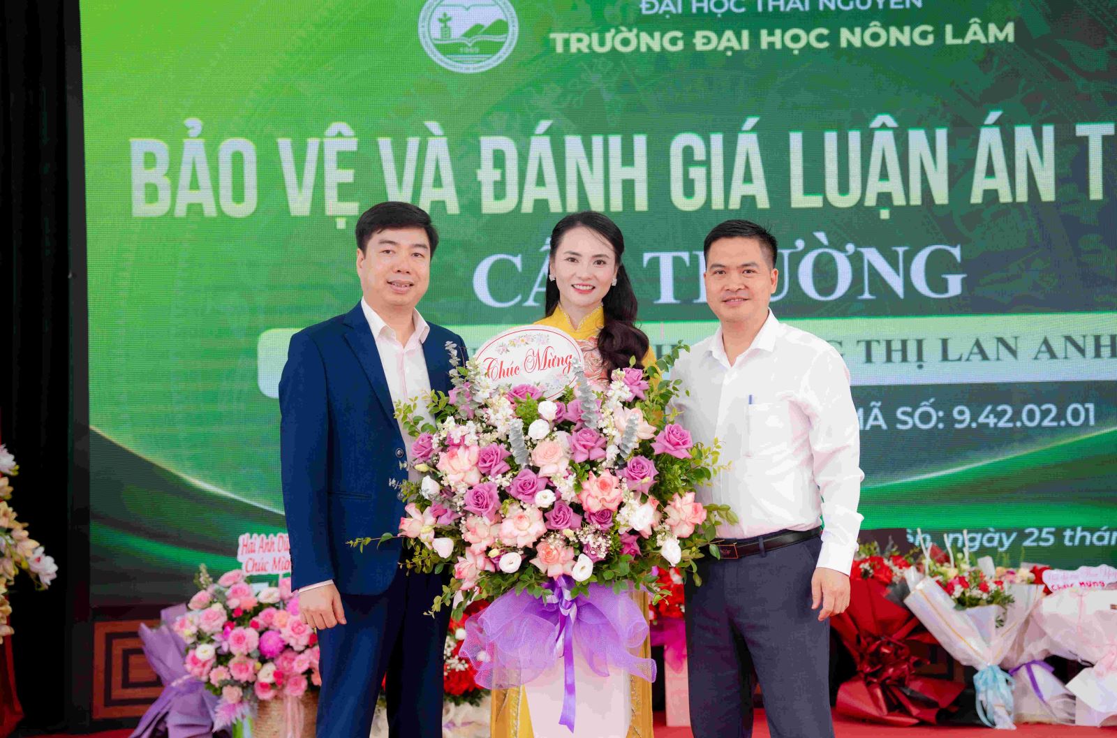 Lãnh đạo Viện CNSH-CNTP tặng hoa chúc mừng NCS