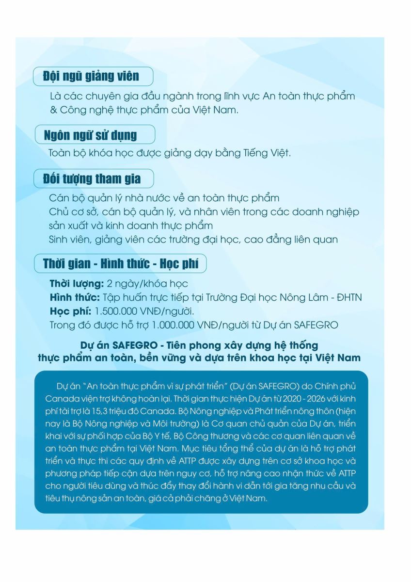 Thông báo: Mở các lớp đào tạo ngắn hạn về An toàn thực phẩm