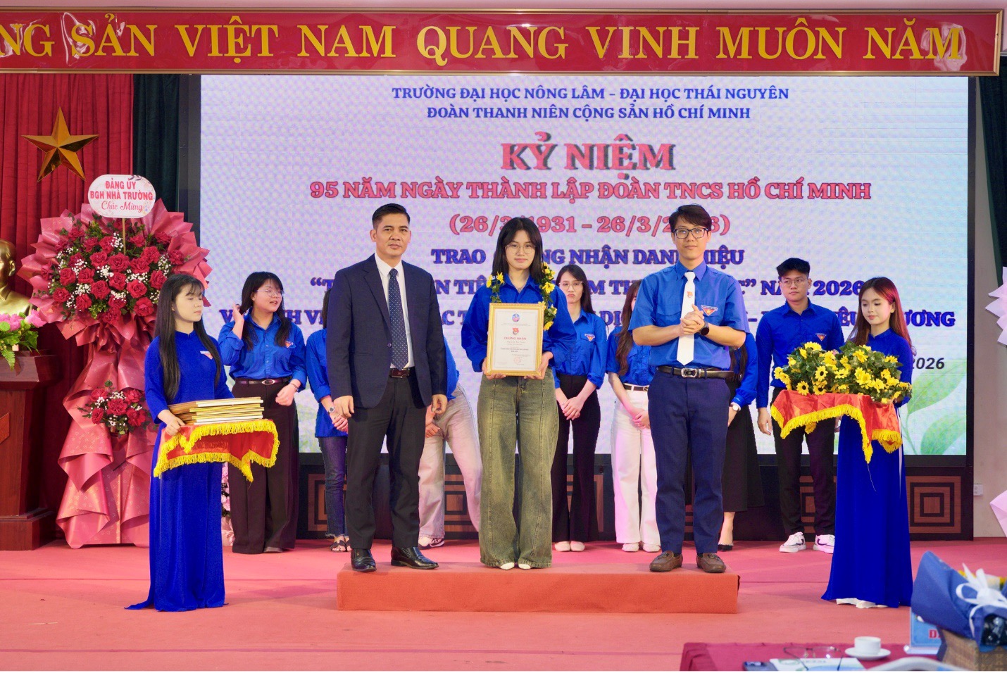 Sáng ngày 22/03/2026, tại Phòng họp A4, Đoàn trường Đại học Nông Lâm - Đại học Thái Nguyên đã long trọng tổ chức Chương trình Kỷ niệm 95 năm Ngày thành lập Đoàn TNCS Hồ Chí Minh (26/3/1931 – 26/3/2026). Buổi lễ là dịp để các thế hệ cán bộ Đoàn cùng nhau ôn lại chặng đường 95 năm xây dựng và trưởng thành của Đoàn TNCS Hồ Chí Minh; đồng thời khơi dậy niềm tự hào, ý chí và trách nhiệm của tuổi trẻ trong giai đoạn mới. Tại buổi lễ, nhiều sinh viên tiêu biểu của Viện được vinh danh với danh hiệu Thanh niên tiên tiến làm theo lời Bác.